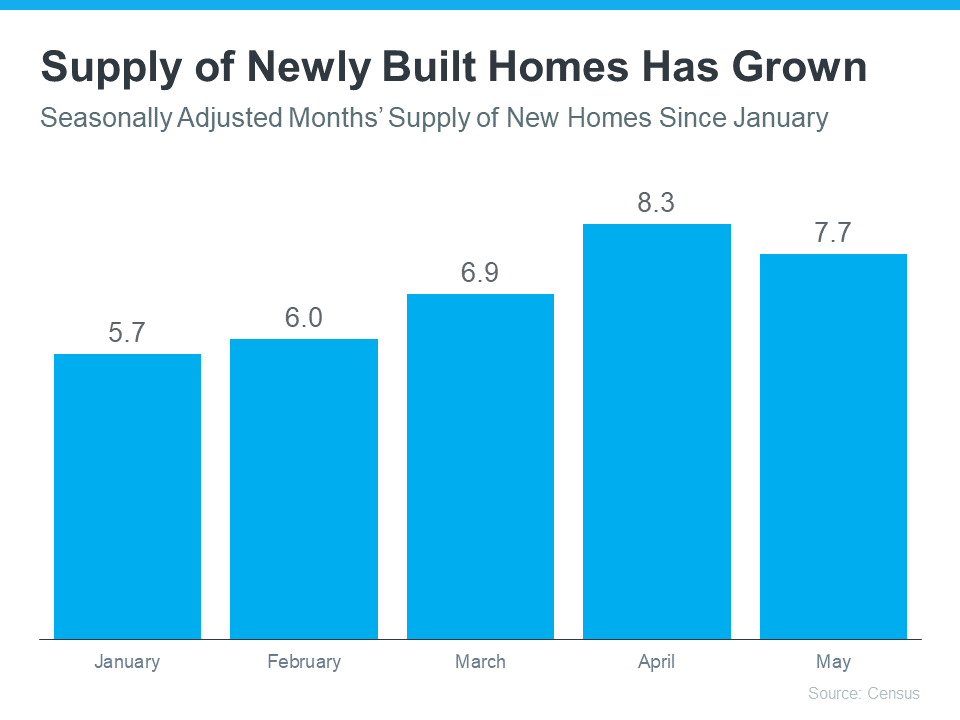 Census data shows there’s an increasing number of new homes available for sale. It includes homes that are under construction, soon to be completed, and fully built. As the graph below highlights, the supply of new homes for sale has also grown this year:
